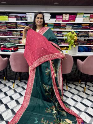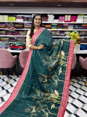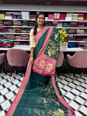 Saree: Premium Soft Tussar Saree with Digital Print, Contrast Border and Blouse