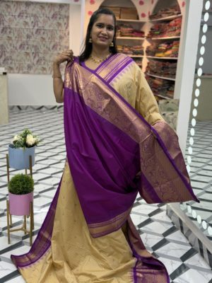 Saree: Semi Gadwal Saree with Contrast Border and Pallu
