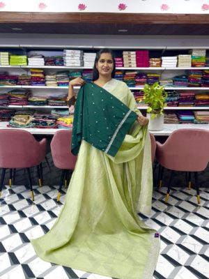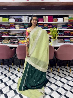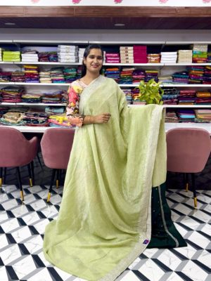 Saree: Fancy Crush Saree with Silver Work Border and Contrast Blouse with Work
