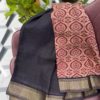 Saree: Maheswari Silk Saree with Gold Zari Weaving Contrast Border and Contrast Blouse