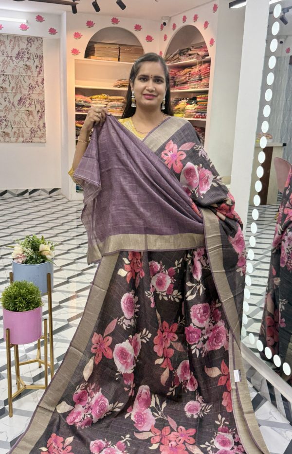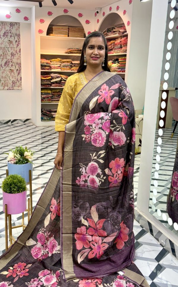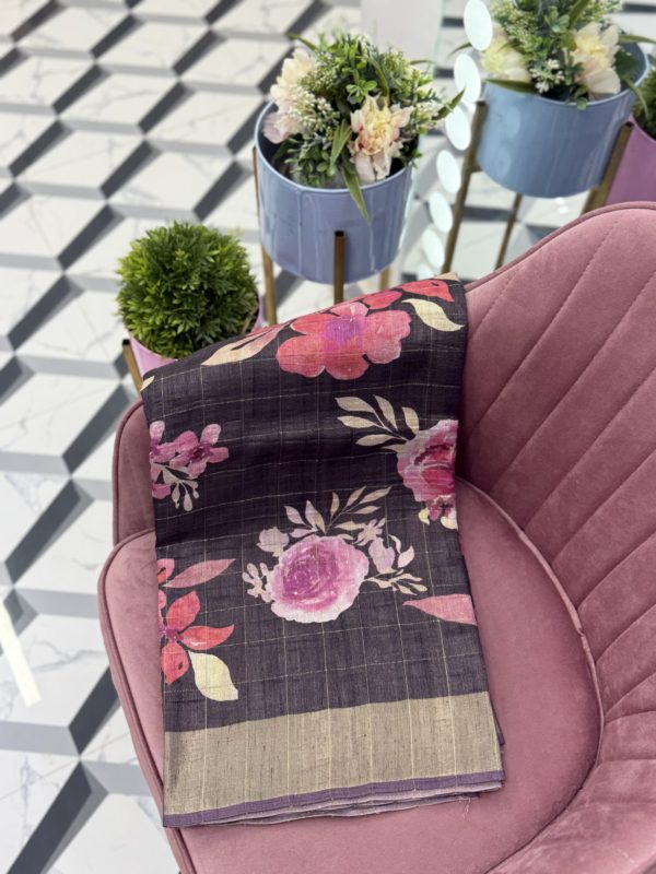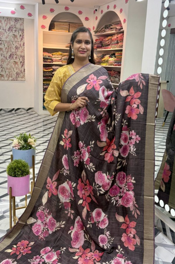 Saree: Premium Soft Tussar Saree with Floral Digital Print allover