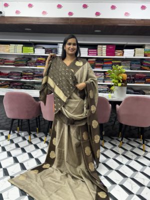 Saree: Munga Silk Saree with Contrast Border and Blouse