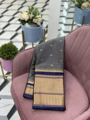 Saree: Semi Gadwal Saree with Contrast Border and Pallu