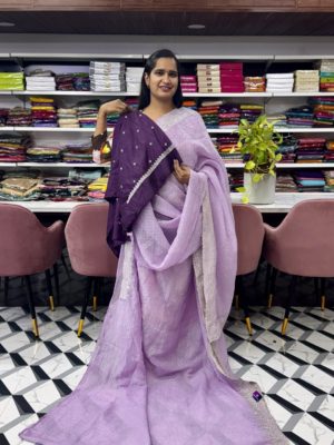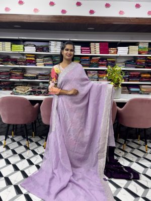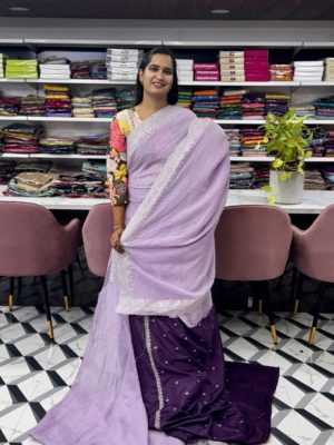 Saree: Fancy Crush Saree with Silver Work Border and Contrast Blouse with Work