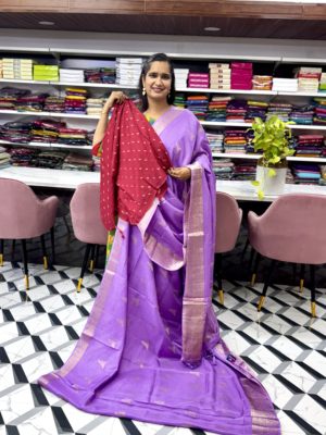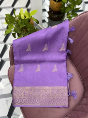 Saree: Soft Tussar Saree with Gold Zari Border and Contrast Banarasi Blouse with allover booties