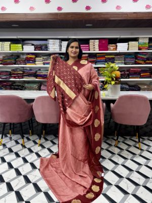 Saree: Munga Silk Saree with Contrast Border and Blouse