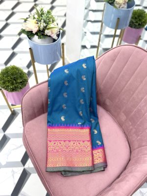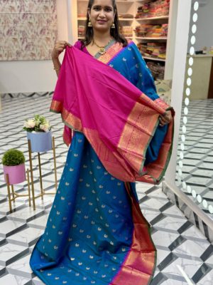Saree: Semi Gadwal Saree with Contrast Border and Pallu