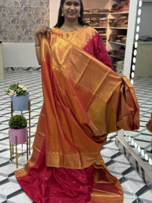 Saree: Semi Gadwal Saree with Contrast Border and Pallu