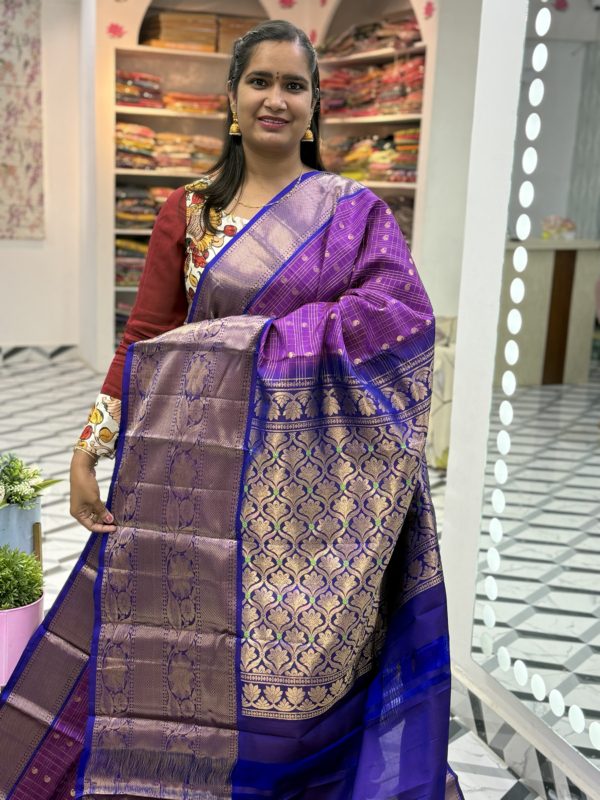 Saree: Premium Kanchi Pattu Saree with Checks allover with Contrast Borders and Pallu