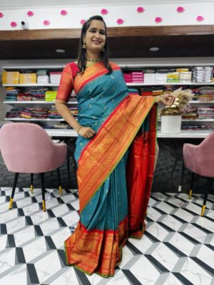 Saree: Semi Gadwal Saree with Contrast Border and Pallu
