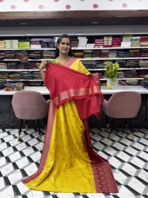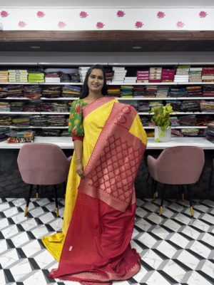 Saree: Fancy Chanderi Saree with Contrast Banaras Brocade Border and Blouse
