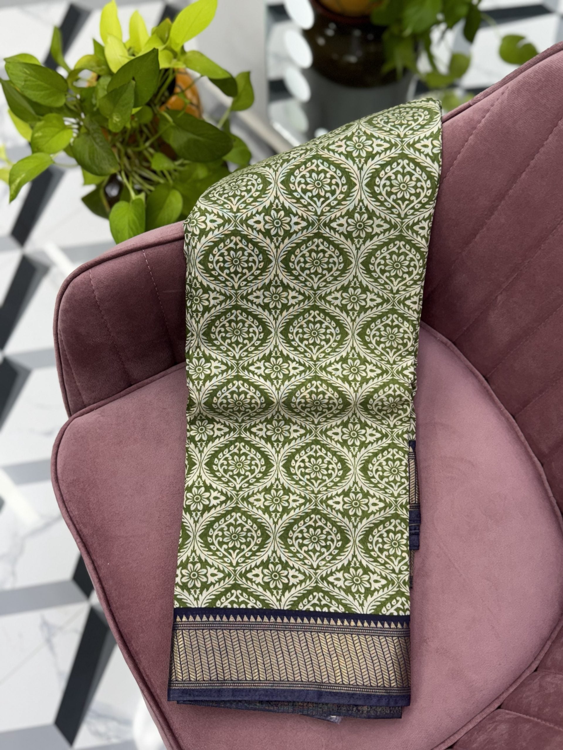 Saree: Fancy Banaras Saree with Contrast Border and Brocade Blouse