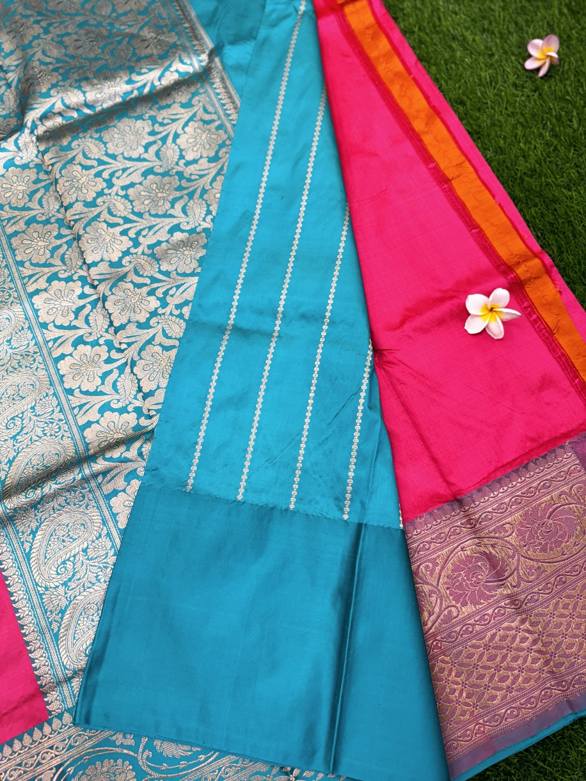 Saree: Fancy Banaras Saree with Contrast Border and Brocade Blouse