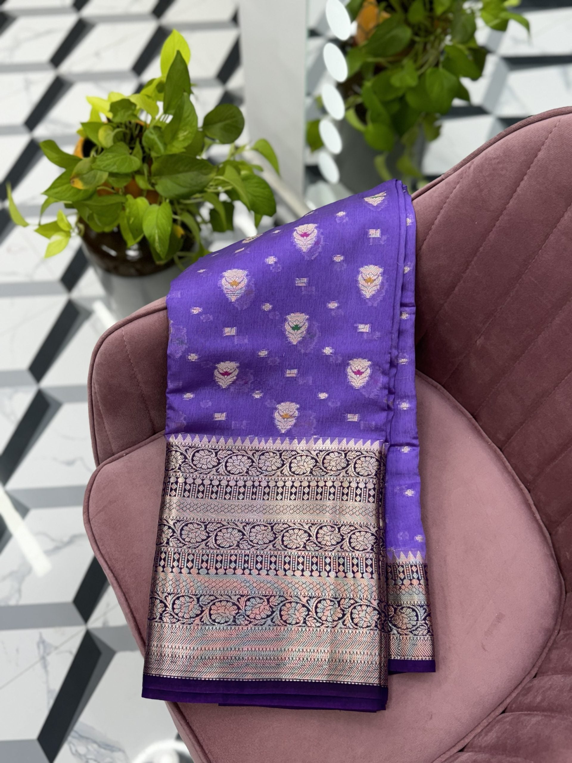 Saree: Fancy Banaras Saree with Contrast Border and Brocade Blouse