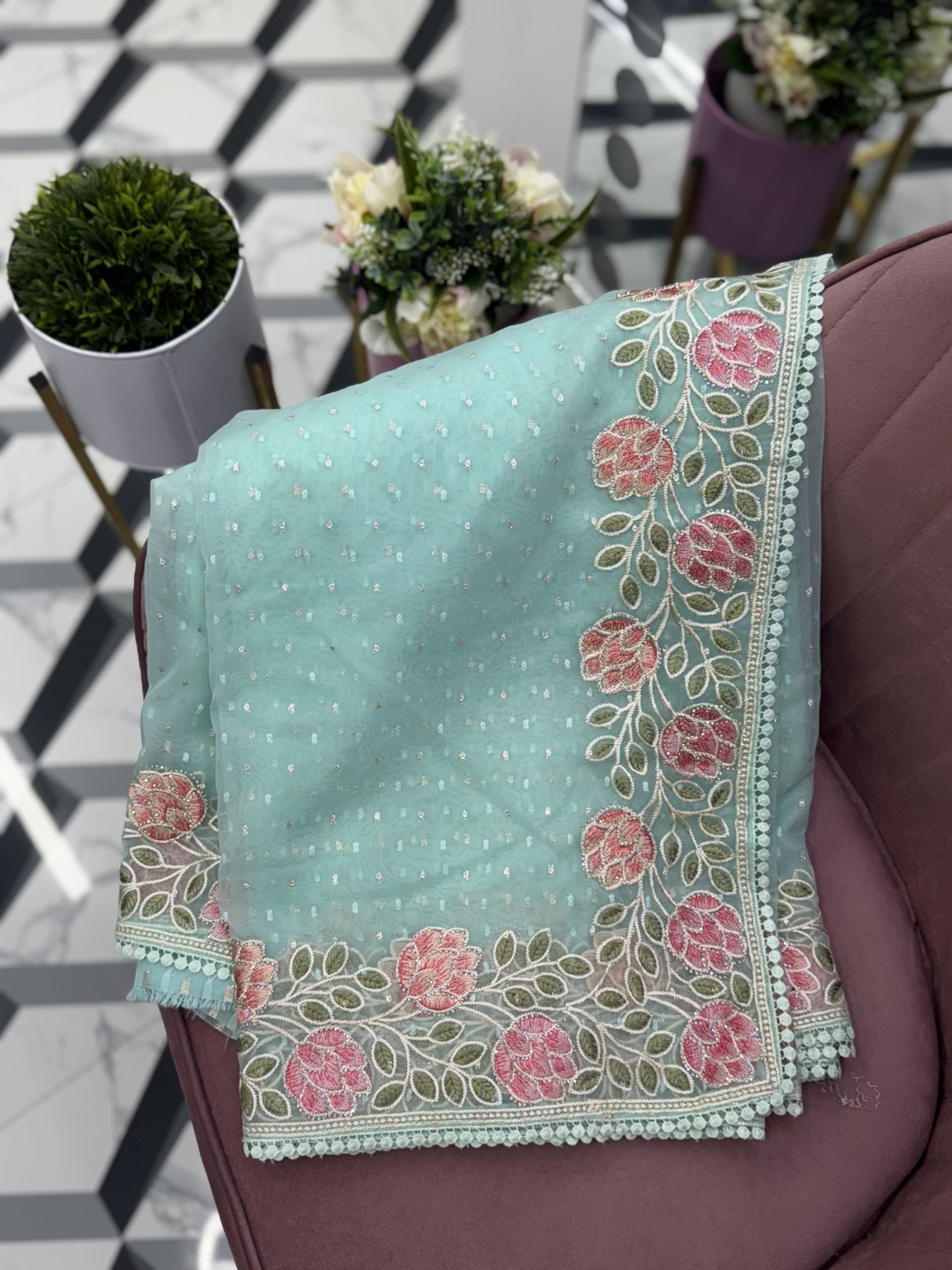 Sea blue Premium Organza Saree