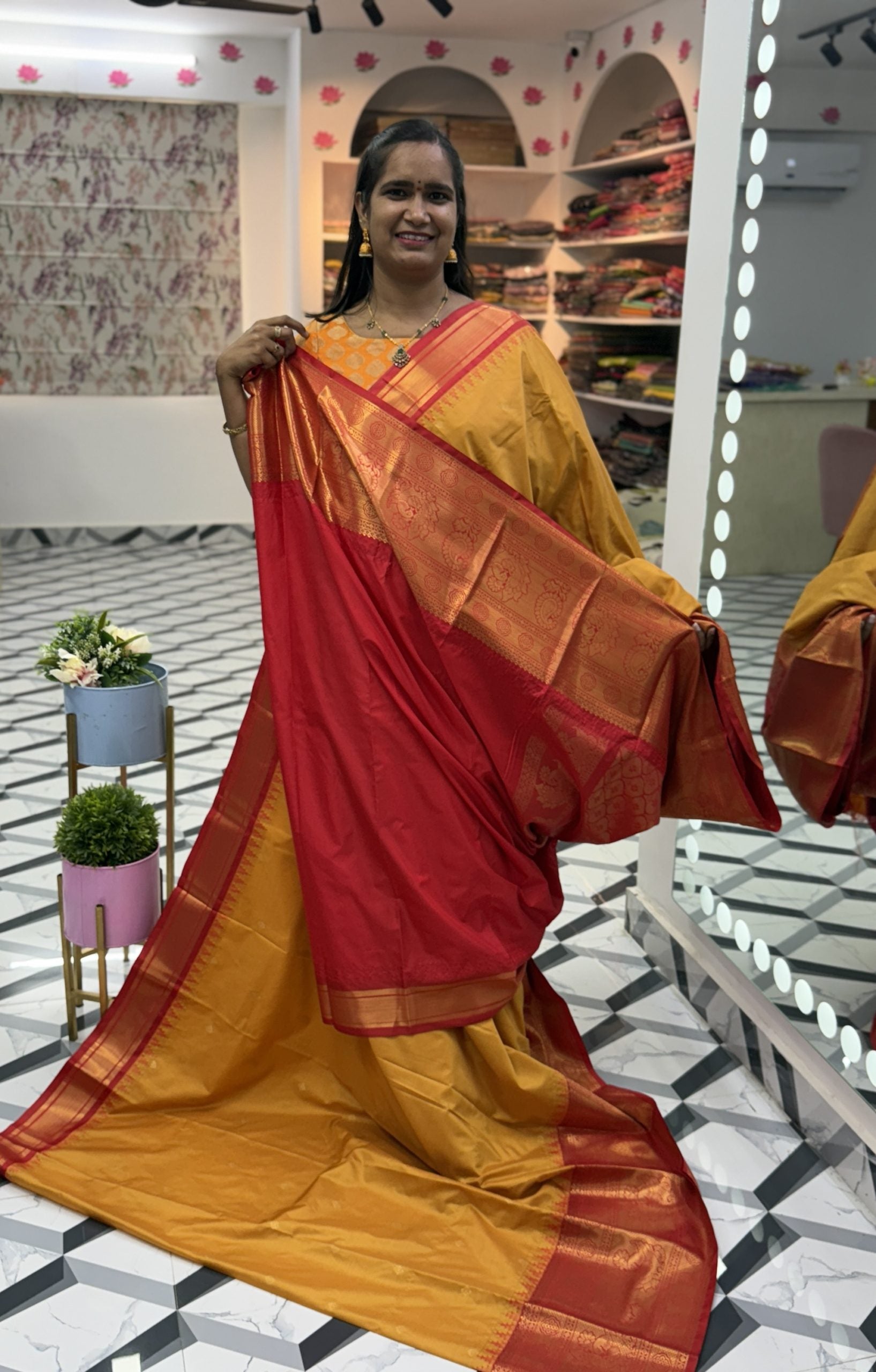 Tags: Bandhini, gold border, red