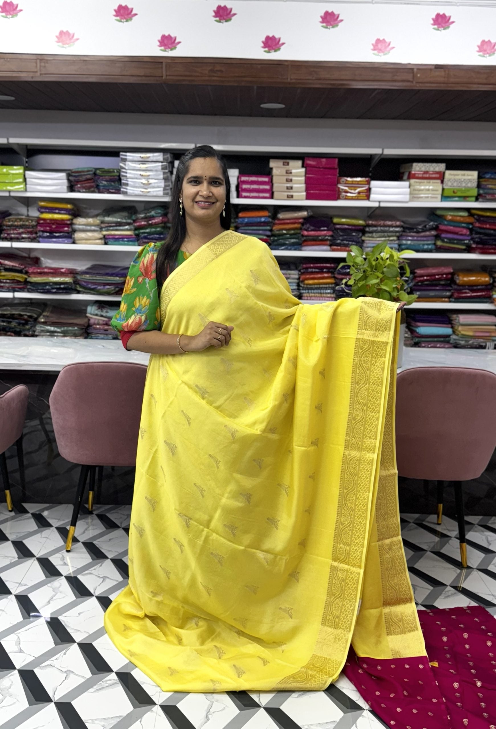 Saree: Fancy Banaras Saree with Contrast Border and Brocade Blouse